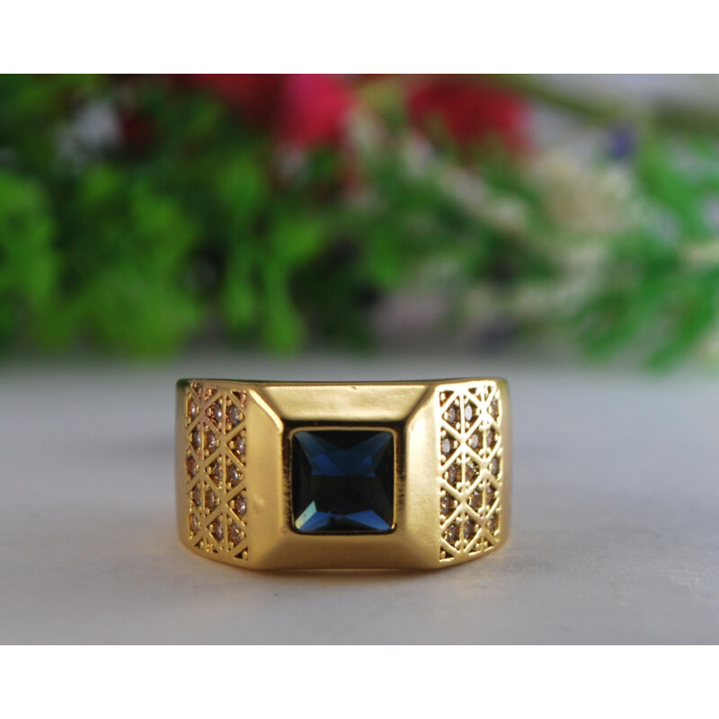 ANEL PEDRA AZUL CRAVEJADO LATERAL TAM. 24